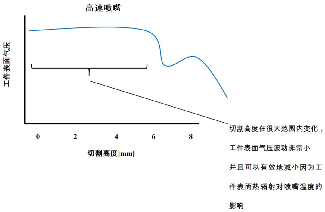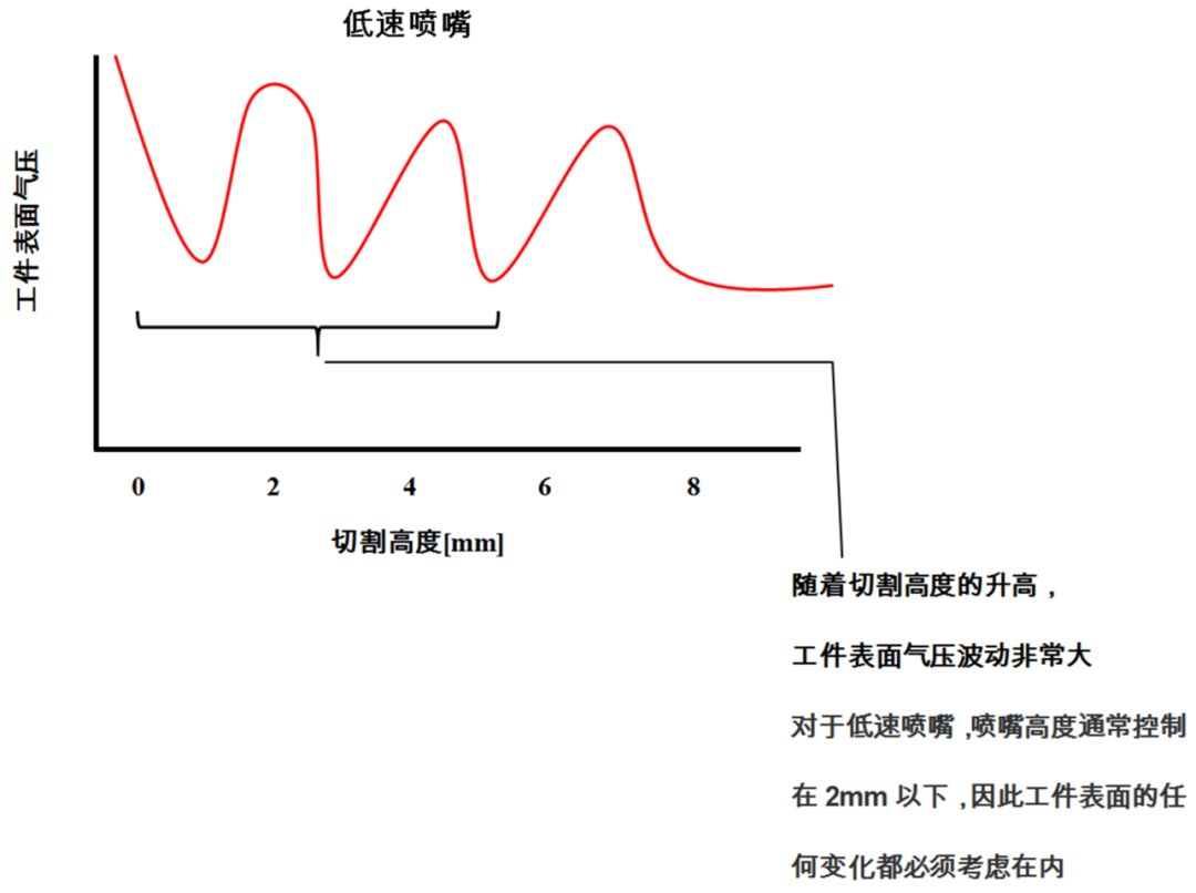 而如果使用普通低速喷嘴,工件表面会气压随着切割高度的变化而产生较大的波动,导致切割效果不理想。