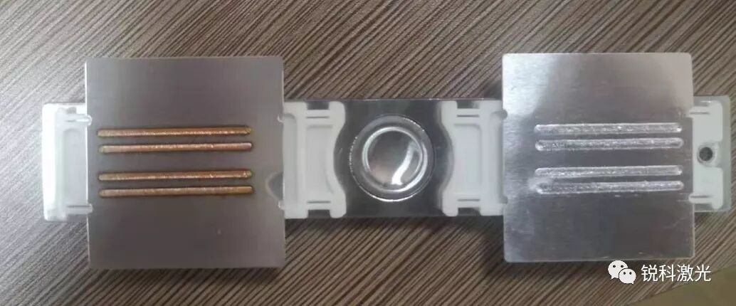 焊接难点: 焊缝连接宽度不够导致强度不够。 解决方案: 选用小纤芯光纤激光器,采用摆动焊接。 Difficulties: Insufficient weld joint width results in insufficient strength. Solutions: Small core fiber lasers are used for wobble welding.